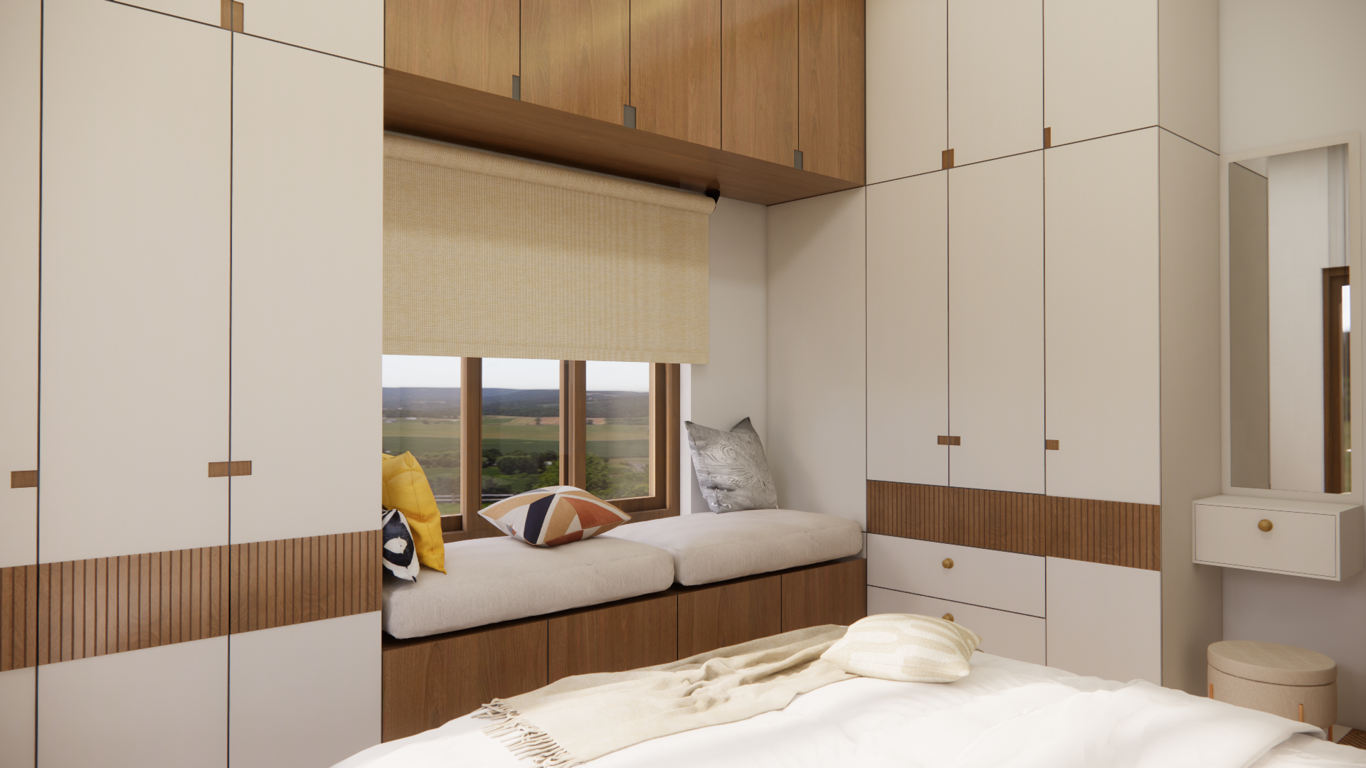 The entire first floor is dedicated to kids, comprising three bedrooms designed with their needs in mind. A spacious balcony on the first floor features a garden area under a glass roof, providing a safe and enjoyable outdoor space for Family.