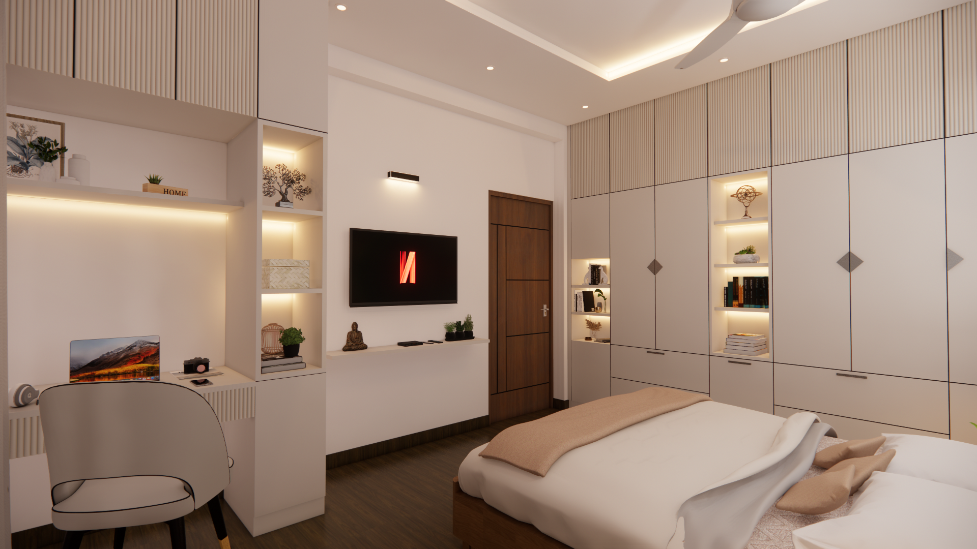The ground floor master bedroom epitomizes luxury with lavish interiors and a bar counter, offering visual continuity with the garden area for a refreshing retreat. Adjacent, the guest room is appointed with premium finishes, ensuring comfort and sophistication for visitors.