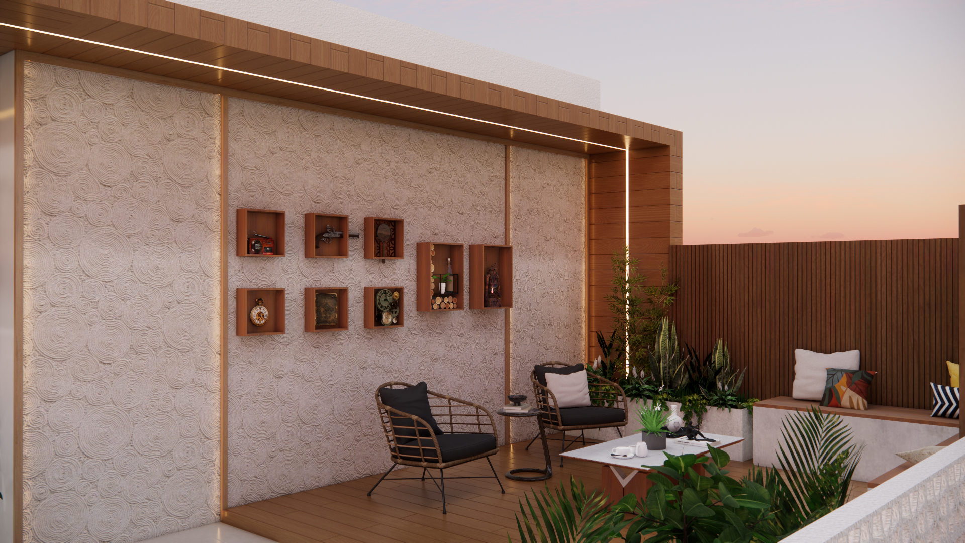 We worked mainly on natural materials such as wood, veneer, marble, plants to add warmth to the abode, these materials have great character and personality and get better with time. This design not only bring in warmth to the spaces, they also ensure that the house blends effortlessly with the surrounding interior landscape and also creates a comfortable environment inside. We used exposed bricks extensively to develop a unique character with minimum maintenance required over time.