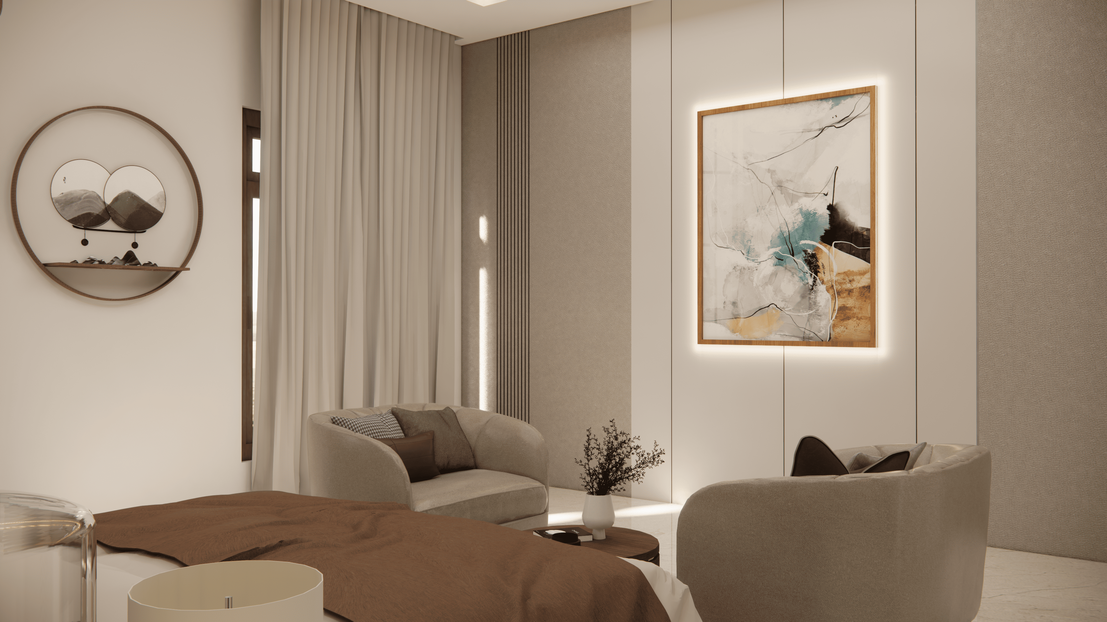 A small atrium in the Living Area, adding greenery and natural light to the interior. The interior is adorned with top-notch materials and exquisite finishing to enhance the overall luxury feel.