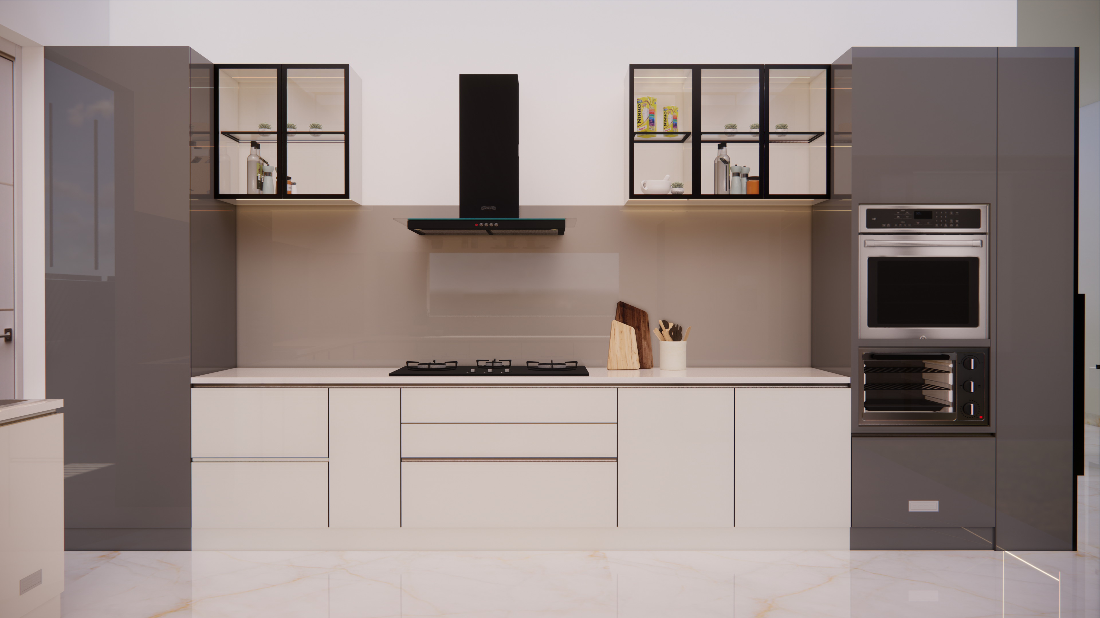 The ground floor master bedroom boasts acrylic and glossy finish interiors, offering a luxurious retreat complete with a private garden sit-out area. A premium interior design scheme extends to the guest room on this level, ensuring comfort and sophistication for visitors.