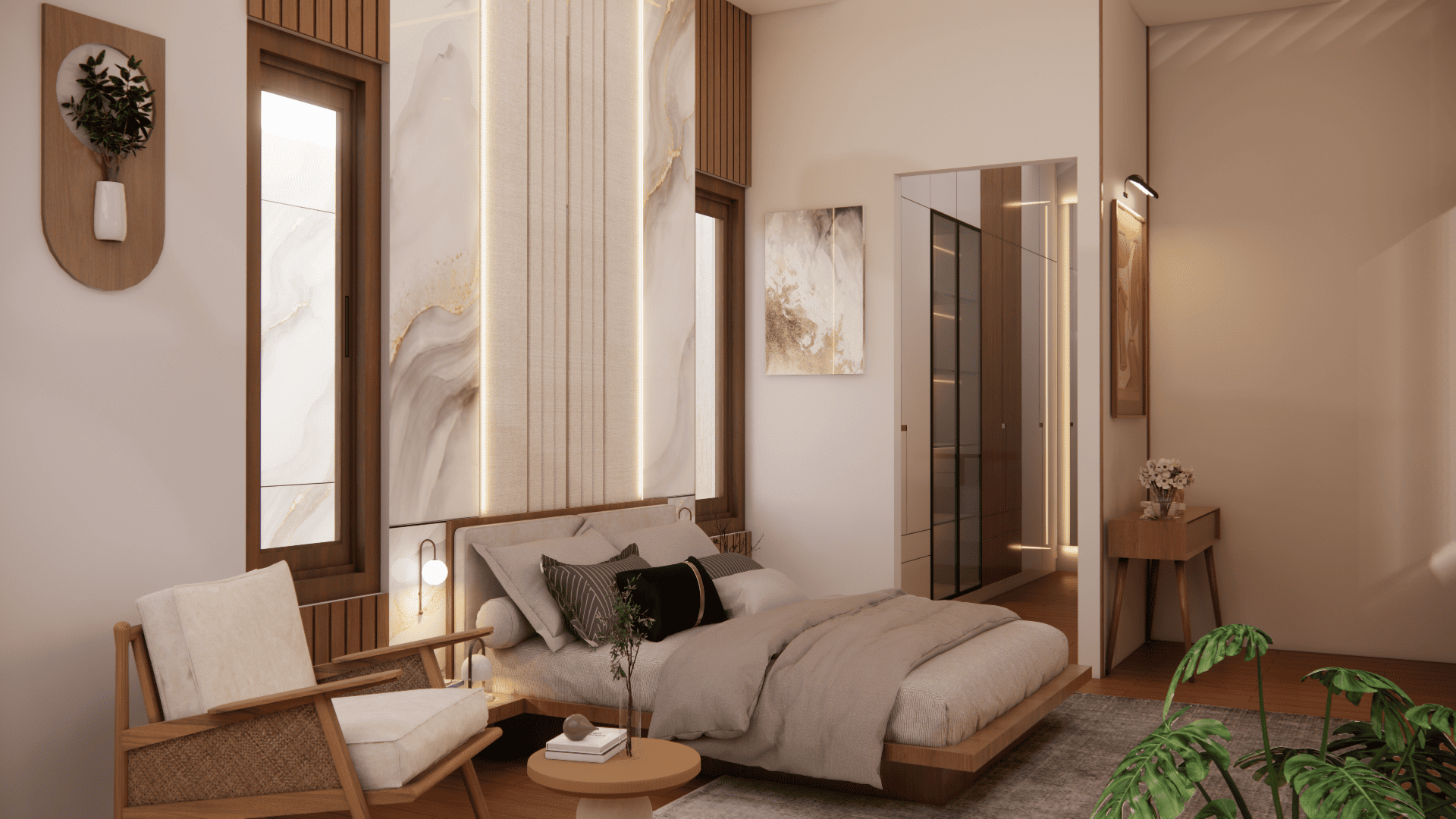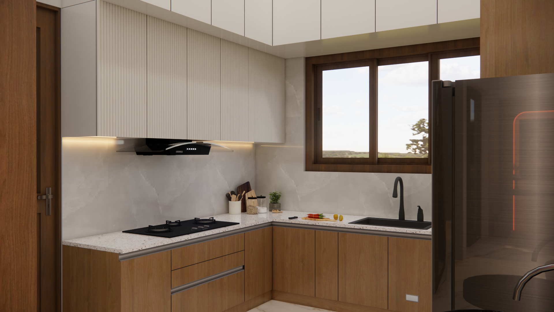 Our vision is to provide privacy for individual zones such as Living, Kitchen and bedrooms space, Ensure ample natural light and cross ventilation throughout the house for a comfortable living environment. Use of veneer and natural cladding for the interior walls, enrich the combining traditional and contemporary aesthetics.